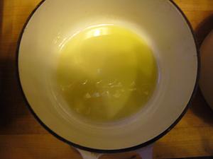 Prepare stufato sauce (recipe below) and cook off the percatelli. Divide the olive oil between the pots. You want it to coat the bottom of the pot. (I like to use la cruset pots for this, but you can use any individual pots with a tight fitting lid).