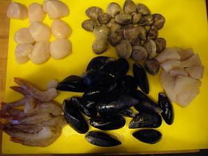 Assemble and clean the seafood.