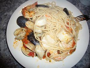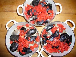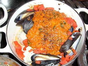 Add the fish, clams and mussels.