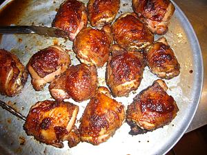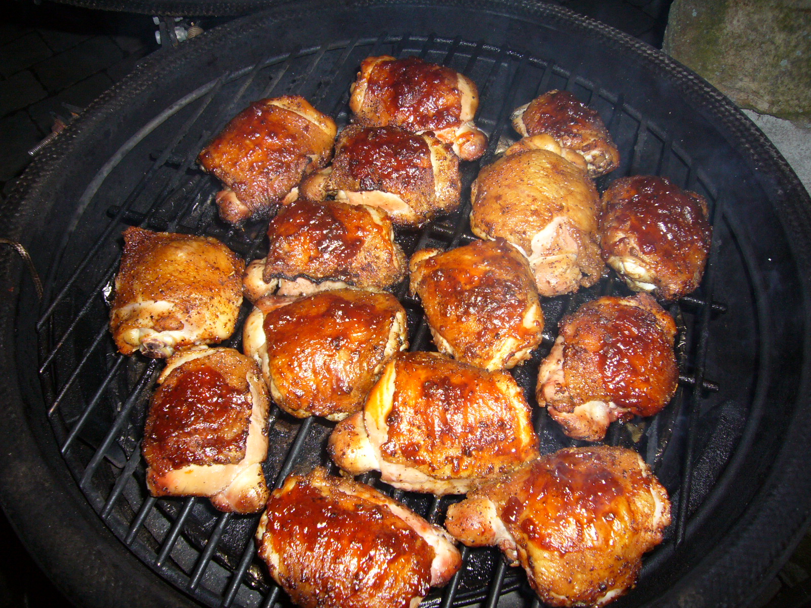 At this point (sorry, I panicked and there are no pictures) I was worried about burning the chicken so I check it at about 5 minutes. Upon lifting the dome, the fat ignited. The whole egg was in flames, the foil melted. I was able to remove the chicken with it still in salvageable condition. As the temp dropped, I applied a bbq sauce. Put back on the egg at 325 again to finish sauce. NOTE at this point, the chicken was NOT done. Was hitting about 150.