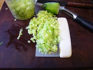 The lemon zest should be finely minced. Whisk the lemon zest, lemon juice, salt, oil and some black pepper. This mixture may seem salty, but is fine when added to the pasta.