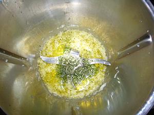 When the onions are done, add the rosemary and process another 3 minutes at speed 1 at 100C