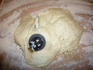 Remove the blade, scraping off what dough you can. Flour the top of the dough.