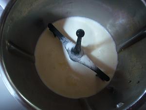 Put the cream, half-and-half, and sugar into the ThermoMix. Process at 80C for 5 minutes at speed 1 with butterfly. Mixture should just reach 80 at the end of the 5 minutes. (Alternatively, mix in a sauce pan till the mixture reaches about 170 F). Add the gelatin/cream mixture and process another minute or two without heat, or until gelatin dissolves.