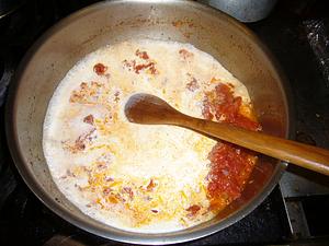 Reduce by about 1/3 stirring so as to not scorch the tomatoes.