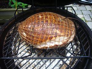 Preheat BGE to 310 grid with plate setter, legs up. Let internal temp adjust for an hour.
