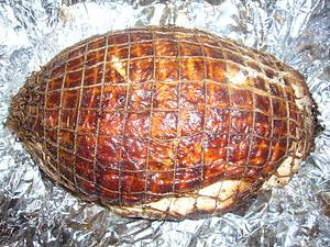 Place roast right on the rack or on a roasting rack. Add 3 chunks of cherry.