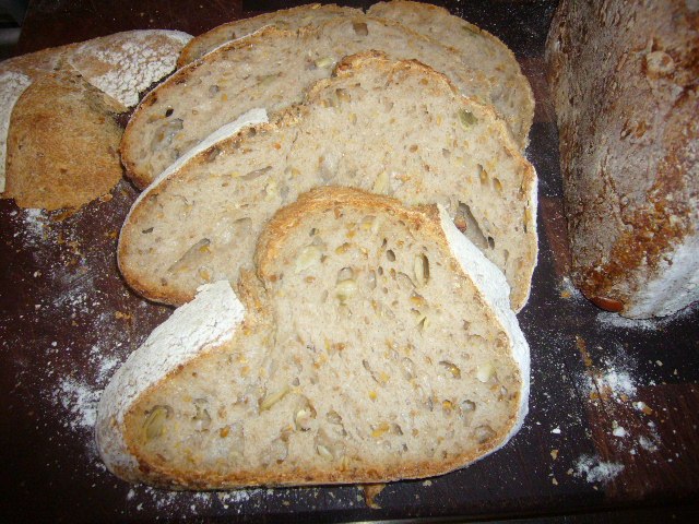 The night before expand your sourdough starter using equal weights of flour and water till it reaches 425 grams plus sufficient excess to store as your new starter.