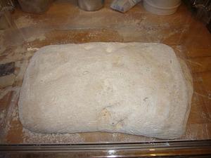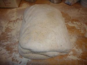 Place dough in a storage container sufficient to hold volume. Allow to rise, slowly, to develop flavors, about 2 hours. Fold and return to storage container. Allow to rise another 2 hours.