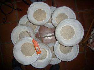Place one dough in each banneton. Allow to rise till doubled. NOTE: If you allow to raise in a very cool room (60F) you'll have to extend the time. The dough in the pictures was allowed to proof for 12 hours. Even in that time, it did not double in size, yet the oven spring and crumb was beautiful. You have to be familiar with how your sourdough works and adjust accordingly.