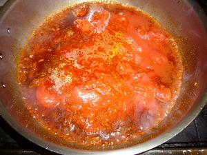 Add the tomatoes and a half cup of water. Reduce the heat to medium.