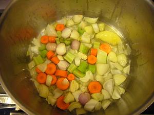 Saute the veggies in the first butter (2 oz/ 1/2 stick)