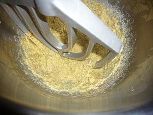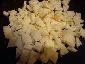 Place the bread in a mixer bowl. Add the milk and eggs. Beat for about 5 minutes or till bread is dissolved in the liquids.