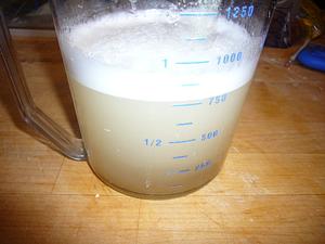 Warm the honey so it pours easily. Weigh out the water into a pitcher. Slowly add the warm honey to the water while using a stick blender to mix. You don't want the honey to collect on the bottom and become hard to dissolve.
