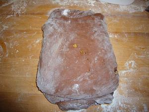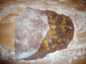 Fold remaining third onto two thirds. Repeat steps 9 - 14 without adding more nuts or chocolate. Place into dough bucket, close cover, and let rest 20 minutes.