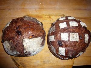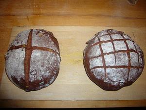 Bake in a preheated 400F oven, with initial steam, for about 30 minutes or until internal temperature reaches 200F. Cool very well. Enjoy.
