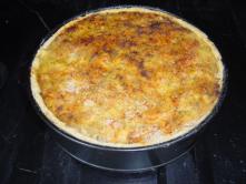 Last time (9/9/04) I put it into a springform instead of a pie plate... This seemed to work really well as it was a little easier to serve. Don't take the sides off the spring form until the pie has cooled, and the cheese set, or the sides may break.