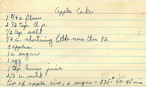 Bake in a 350 oven for about a half hour. Wait for cake to start shrinking from the sides of the pan and the apples to be tender.