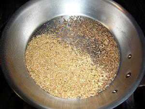 Toast the coriander and caraway till fragrant. Finely grind the coriander and caraway.