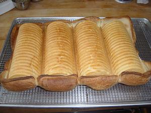 With the pullman loaves, be careful about weight and proof. Here are one pound doughs