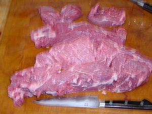 Prepare the beef. Trim the meat by separating the muscles. Remove all connective tissue and clumps of fat.