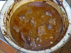 Spread the slices of ginger bread with the whole grain mustard. Lay slices of ginger bread on the sauce/meat. Cover and bake at 300 for about 2.5 hours or until meat is tender.