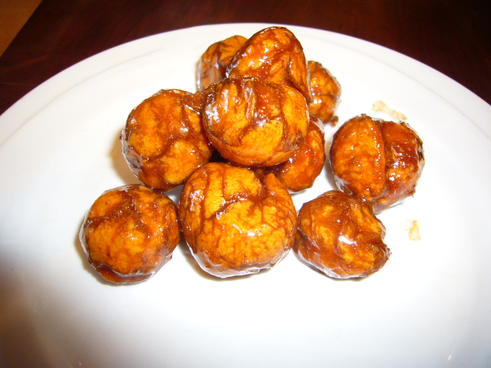 Boil the balls until they turn a mahogany brown. Add water if necessary to thin syrup.