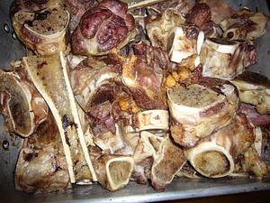 Place bones in a large pot and cover with COLD water by about 4 inces. Slowly bring to a simmer DO NOT BOIL Skim scum as it rises to the top.