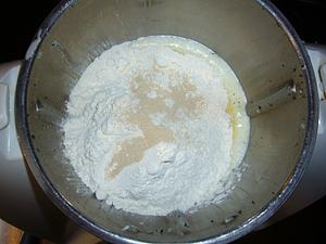Turn the TM bowl upside down, and release the base, allowing the dough to fall out onto the table. You may have to shake the bowl a little to get it moving. Clean out the bowl the best you can with a spatula.
