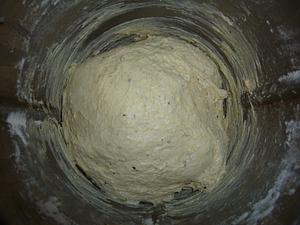 Remove the blade, scraping off what dough you can. Flour the top of the dough.