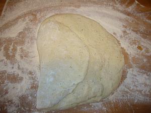 Rotate the dough a quarter turn, pat out and repeat folding.