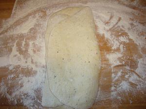 Pat out a bit and then fold the remaining third over the other two thirds.