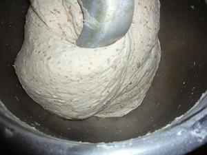 Add flours and mix for about 10 minutes or until the gluten is developed.